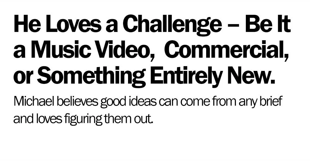 In 2024, Michael was nominated for an ARIA Award (Best Video) for his work directing Budjerah’s Is It Ever Gonna Make Sense.